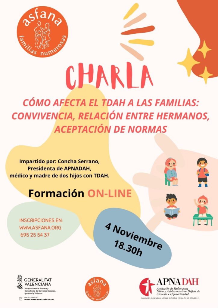 Desde ASFANA, os queremos invitar a participar en una interesante charla online gratuita titulada “Cómo afecta el TDAH a las familias: convivencia, relación entre hermanos y aceptación de normas.”